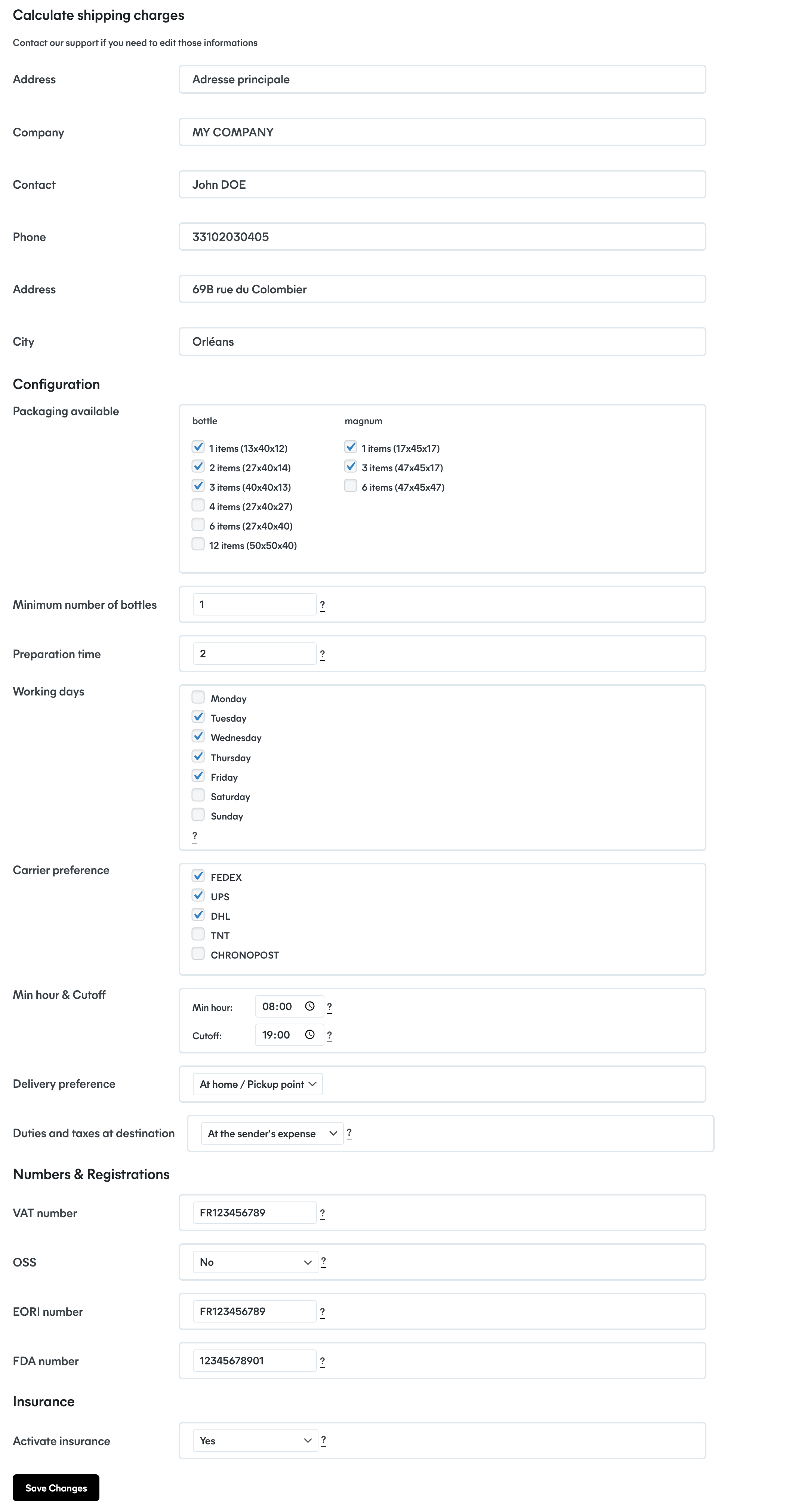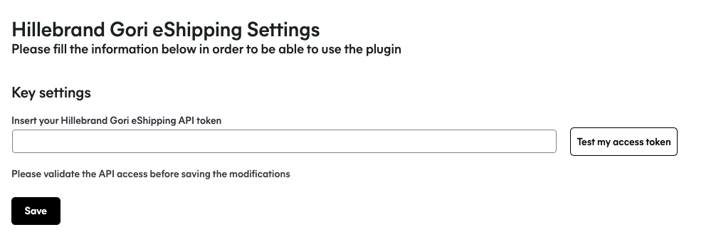 Rellene la configuración del plugin en WooCommerce > Hillebrand Gori eShipping.
