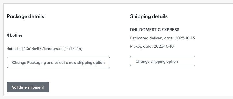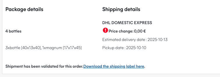 Validar el envío. Una vez hecho esto, podrá descargar la etiqueta de envío y el envío ya no se podrá actualizar.