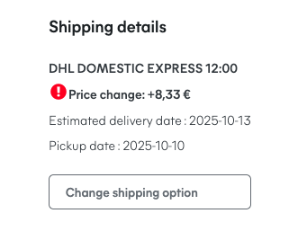 Si elige otra tarifa, el importe total del pedido no debe cambiar y debe aparecer un mensaje informándole de la diferencia de precio (que correrá a cargo del vendedor).