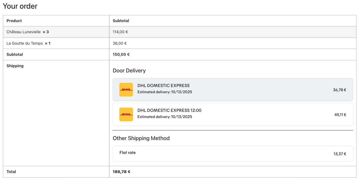 Si selecciona una tarifa de entrega en punto de recogida, debería ver el botón «Seleccionar un punto de recogida».